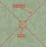 O boom, pode der uma peça em madeira rígida se for para 2 elementos mas se for mais deve fazer apelo a um bom tubo em duralumínio de boa qualidade e pensar em meter uma segurança ( aubanagem ) em corda de plástico de 6 ou 8mm desde a frente à traseira inserindo um prumo de ½ metro ao centro do boom em matéria rígida